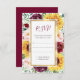 Sunflower Burgundy Fall Gold Floral Wedding RSVP Card