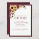 Sunflower Burgundy Floral Wedding Save The Date