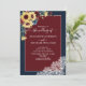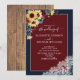 Sunflower Burgundy Navy Blue Wood Script Wedding Invitation