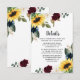 Design features elegant watercolor sunflowers, burgundy red and navy blue roses, white magnolia and various types of greenery. The design's back features matching elements to match the front.
