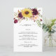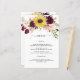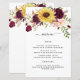 Sunflower Burgundy Red Blush Wedding Menu Cards