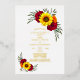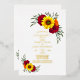 Invite your friends and loved ones to your engagement party with this elegant invitation featuring sunflowers and burgundy roses and gold foil text on the front of the invitation.