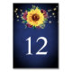 Sunflower Burgundy Rose Lights Navy Blue Wedding Table Number