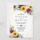 Sunflower Burgundy Roses Blue Rustic Frame Modern Geometric Burgundy Neutral Floral Wedding Invitation