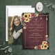 Sunflower Burgundy Wood Floral Photo Wedding Invitation