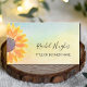 This botanical business card is decorated with a yellow watercolor sunflower and a colorful background.