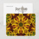 Original photograph of a sunflower, kaleidoscoped into an intensely color-saturated design