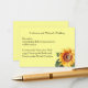 Yellow Sunflower Country Wedding Reception Insert Card which matches the invitation in my store wedding category. Features a beautiful sunflower bloom on a stem with leaves. This is a soft rendering image. The background is a lighter yellow. Can be for an country theme, outdoor or summer theme wedding. It is simple, festive, and fun. Add this to your wedding invitation if the reception is at a different location. NOTE - this is also the spot to put any extra info, such as black tie optional, etc. Just skip down one space in the address section, and add it there. Break up the lines if it runs into the floral design.