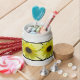 Enjoy serving candy or cookies from this sunny sunflower jar. The sunflower heads are against a black crisscross patterned background. The handsome jar adds beauty and sunshine to your kitchen decor. Matching mugs and teapot are also available.