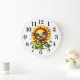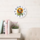This wall clock is shown with a cute sunflower cutie art print.