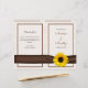 The text on this sunflower damask wedding program is fully customizable. The program itself is intended to be folded down the middle when you receive it. You can change the text using the personalize option. For more extensive changes to the program, including changing the background color, font, font color, font size, or text placement, choose the "customize it" option. This is a great wedding program for a summer or fall wedding with a sunflower theme. The colors are bright yellow and chocolate browns. Simple, pretty, and cheerful. This program is currently customized for a wedding, but would also work great for an anniversary party program (renewal of vows perhaps) or a church bulletin. All you need to do is change the wording. NOTE: This invitation is a flat design without any 3D embellishments.