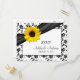 The text on this sunflower black and white damask wedding RSVP or reply postcard is fully customizable. You can change it using the personalize option. For more extensive changes to the postcard, including changing the font, font color, font size, or text placement, choose the customize option. This RSVP postcard can easily be turned into a save the date postcard. Just change the text. Some matching products you might like: