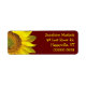 Sunflower on dark maroon red, return address labels. Custom, bright yellow text matches the big sunflower at the edge. Add up to 4 lines of text in easy to read printed font style, to this small size label.