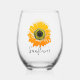 Sunflower Design Stemless Wine Glass with customizable text.