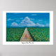 A dreamy poster print of an original painting of a walk through a beautiful sunflower field.