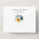 These wedding invitations feature a modern watercolor floral design with sunflowers, blue hydrangeas, roses and green foliage. Personalize with your text. Matching stationery also available.