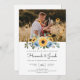 Sunflower Dusty Blue Rustic Photo QR Code Wedding Invitation