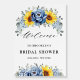 Sunflower Dusty Blue Slate Bridal Shower Welcome Foam Board