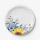 Sunflower Dusty Blue Slate Peony Floral Wedding Paper Plates