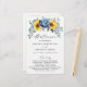 Elegant and modern floral midsummer wedding program card features a bouquet of watercolor sunflower hydrangea & peonies in shades of yellow , slate, dusty blue with lush green botanical leaves and eucalyptus. Please find more matching designs and variations from my "blissweddingpaperie" store. And feel free to contact me for further customization or matching items.