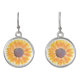 These floral earrings are decorated with a yellow watercolor sunflower.