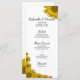 Customize the pretty Sunflower Edge Wedding Menu with the details of the meal that you will serve at your rehearsal dinner, engagement garden party, bridal shower luncheon or marriage reception by adding the salad or first course, entree or second course and dessert or third course. Personalize it with the names of the bride and groom, venue location and event date. This elegant floral wedding menu features yellow sunflowers adorning the corners with a white background.