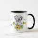 "LOVE MY DALMATIAN" declares this mug for the proud Dal owner. Each side of the mug has a beautiful watercolor portrait of a Dalmatian dog framed by sunflower blossoms and green leaves. Mixed in are sprigs of blue green eucalyptus. Between the two images is the text, which may be easily customized, or even removed, by you.