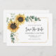 Create a modern Sunflower Floral save the date announcement with this cute template featuring beautiful rustic floral bouquet, geometric frame with modern simple typography on white background.