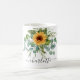 Decorated with a watercolored sunflower and eucalyptus greenery. A transparent background. Personalize and add a name. The name is written with a modern hand lettered stylie script with swashes. To keep the swashes only delete the sample name, leave the spaces or emoji's in front and after the name.