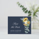 watercolor sunflowers and white script design and navy blue color. You can edit the text and colors.