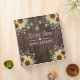 Gather your favorite recipes in this personalized recipe book with yellow sunflowers, eucalyptus leaves, string lights, and brown wood. A charming custom cookbook for your country farmhouse kitchen decor!
