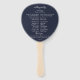 Beautiful watercolor sunflowers and eucalyptus arrangement, back features solid navy blue background, wedding program fans. Personalize text, customize font style, color and size.