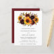 Sunflower floral Budget Wedding Invitation featuring a rustic bouquet with watercolor painted sunflowers, red roses, purple flowers and greenery. This elegant invitation is great for a boho themed fall wedding. These cheap wedding invitations are printed on sheets of paper for a budget friendly option.