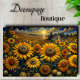 Decoupage_Boutique presents a dreamy sunflower landscape that transforms ordinary furniture into enchanting art pieces. This nostalgic composition features golden sunflowers against a twilight sky, with a charming farmhouse nestled in the distance. The magical sunset creates a warm glow across the endless field of blooms.