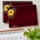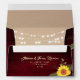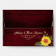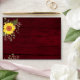 Elegant, country, botanical, rustic barn wood burgundy 5x7 envelope for wedding invitations with return address, sunflowers and string lights.
