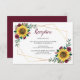 This modern wedding reception card features a watercolor sunflower and burgundy floral design with a faux gold geometric frame. Matching wedding stationery items are also available. Please visit our store or view our collection pages to see the full range.