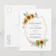 Sunflower Floral Gold Effect Geometric Rustic Save Announcement Postcard