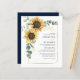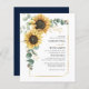 Create a modern Sunflower Floral Budget Wedding invitation card with this cute template featuring beautiful rustic floral bouquet, geometric gold effect frame, with modern simple typography.