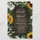 Design features a brown barn wood background decorated with watercolor daisies, sunflowers, greenery, eucalyptus, baby's breath, and lily of the valley.