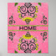 Sunflower Folk Pattern on Pink Poster