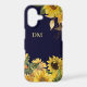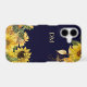 Sunflower Garden on Navy Blue Monogram Case-Mate iPhone Case