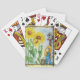 Original watercolor painting by Sandra Gale, featuring a group of sunflowers and a gardener's bag, hat and shovel. Great design for gardeners of all types and a perfect image of summer!