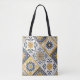 Infuse your everyday life with Mediterranean charm with this tote bag featuring geometric patterns inspired by handcrafted tiles. The vivid palette of cobalt blue and sunflower yellow is reminiscent of traditional Southern European ceramics, with a modern, artistic twist. Perfect for fans of graphic design, textile art or boho-chic accessories with personality. Great for outings, travel or as an eco-friendly everyday bag!