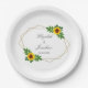 Design features sunflowers and botanical leaves over a printed gold colored geometric frame.