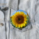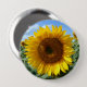 Close up of a sunflower taken against a backdrop of a field of sunflowers