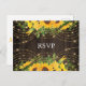 Sunflower Gold String Lights Rustic Wedding RSVP Postcard