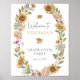 Sunflower Graduation Poster. Make a grand entrance with this stunning welcome poster featuring a beautifully hand-painted floral wreath of pink and dusty blue wildflowers with rustic yellow sunflowers. The elegant gold script adds a sophisticated touch, setting the perfect tone for your high school senior or college graduation celebration. Whether displayed at the entrance or as a statement piece, this welcome sign ensures your special day begins with warmth and style—create a picture-perfect moment that guests will remember!