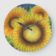 Bright sunflowers decorate this wall clock. The design is from an original illustration.