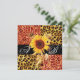 Elegant ,classy floral design with yellow sunflowers, wild cat animal skin,a vibrant 3D red ruby gemstone with black stripe, easily customizable with your text and initials as a wedding ceremony, nuptial announcement ,sweet 16 ,place card ,save-the-date ,thank you ,baby showers,bridal showers,quinceanera birthday parties,Bat Mitzvah,romantic engagement showers,Holiday ,office ,family reunions ,anniversaries,gatherings,school graduations,concert,recital or just about any event you wish!