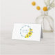 Sunflower loveliness wedding place card, features a lovely white background with a beautiful sunflower graphic. The text and lines are all presented in blue. The back displays a floral wreath with the couple's initials and wedding date printed. For matching items, check out the whole collection today.